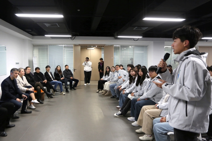 代表團參觀了新能源汽車之旅E-Motion Room、精益培訓中心以及智能制造產(chǎn)教融合實訓中心,深入了解了大眾學院教學及行業(yè)培訓的創(chuàng)新模式。代表團一行與2024 級全體學生及部分 2023 級學生展開了親切交流。學生們踴躍發(fā)言,積極分享所學所感,對話中滿是對投身于未來移動出行產(chǎn)業(yè)的熱切向往。
