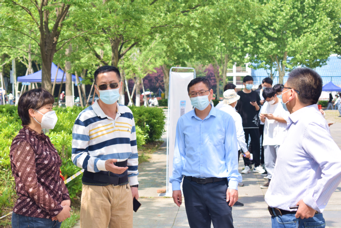 上午九點,校黨委副書記劉建中前往各個檢測點,看望慰問了核酸檢測采集現(xiàn)場的醫(yī)務(wù)工作者和相關(guān)工作人員,認真聽取了各采樣點有關(guān)負責(zé)人關(guān)于核酸檢測進展、秩序維護等方面的介紹。