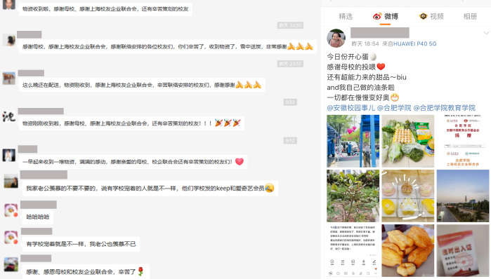 在上海校友企業聯合會的鼎力支持和多方協調下,截至5月2日,價值超過3萬8千元的103份“愛心禮包”在克服了物流運輸的種種困難后,已陸續派送到分散在上海各地區的校友手中。拿到這些珍貴的物資后,校友們紛紛通過微信、微博等方式表示:禮包種類很豐富,蔬菜很新鮮,解決了燃眉之急,非常感謝母校及聯合會的關心和幫扶,讓他們真切地感受到學校的牽掛與惦念,更加堅定了戰勝疫情的決心和信心! 部分頗具影響力的微博賬號還轉載了相關校友的評論,反響良好。
