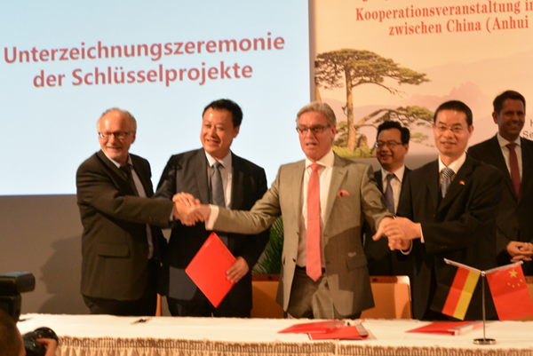 在教育主管部門的大力支持下,基于合肥學院中德合作共建多年的基礎,依托中德教育合作示范基地及我校多年的辦學實力,結合德國“雙元制”高等教育領域的新探索,與德國大陸集團、埃姆登/里爾應用科學大學由安徽省人民政府代表團訪德期間正式簽約(圖1),設置了機械設計制造及其自動化(雙元制)專業--以下簡稱“大陸班”。