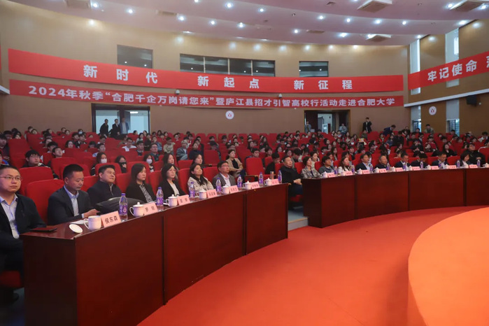 縣委書記許華為介紹了廬江縣縣情、產業發展和人才招引政策等方面內容。他指出,廬江縣水陸通達,人文薈萃,近年來大力實施“工業強縣、農旅富民、大美廬江”三大戰略,全縣經濟社會發展呈現出良好態勢,他誠邀同學們到廬江就業創業,書寫人生精彩篇章。