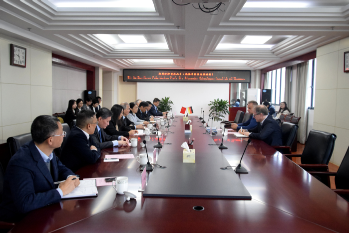 Wang Qidong begleitete Alexander Schmemann und sein Gefolge bei der Erkundung der Fakult?t der Energie, Materialien und Chemical Engineering und das Volkswagen Institut.