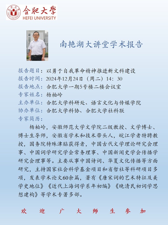 【南艷湖大講堂】以勇于自我革命精神推進新文科建設