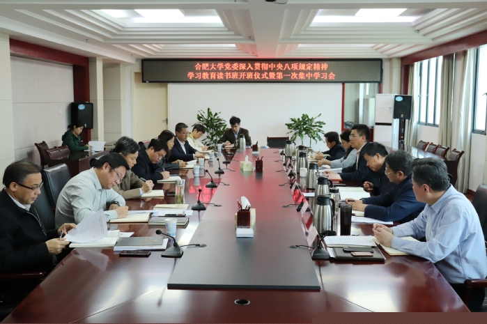 4月7日上午,合肥大學(xué)黨委深入貫徹中央八項(xiàng)規(guī)定精神學(xué)習(xí)教育讀書班開班式暨第一次集中學(xué)習(xí)在行政樓九樓東會(huì)議室舉行。黨委讀書班采用集中學(xué)習(xí)、自主學(xué)習(xí)和集中研討相結(jié)合的方式,黨委理論學(xué)習(xí)中心組全體成員參加。