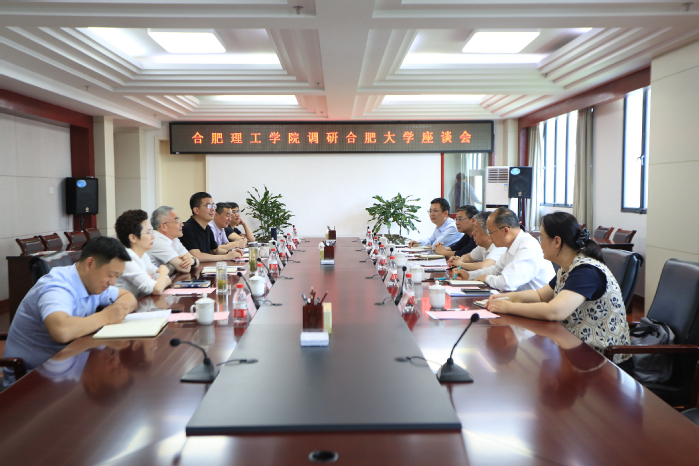 5月16日,合肥理工學院黨委副書記、院長吳玉程,黨委副書記、副院長李先強帶隊來校調研。學校在行政樓九樓東會議室召開座談會,黨委書記鄔平川,黨委副書記、校長任永出席會議。