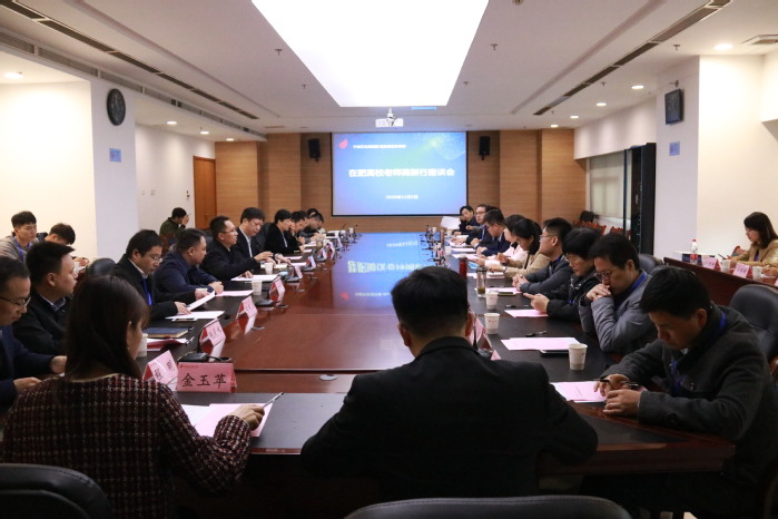 參觀結束,在管委會會議室召開了“在肥高校老師高新行”座談會,團市委副書記車恂、黃坤出席會議,高新區工委書記宋道軍,高新區科技局副局長肖亞東,高新區人事勞動局工作人員洪唯,園區企業負責人和各高校老師代表參會。