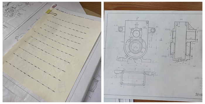 在劉丹萍老師的辦公桌上,疊放著各種尺寸的工科圖紙、日常的課程構型集訓題和指導學生參賽的繪圖試卷,小山一樣的材料將她團團圍住,雖然已經記不清修改了多少遍,但她對班上每個學生的作圖風格如數家珍。