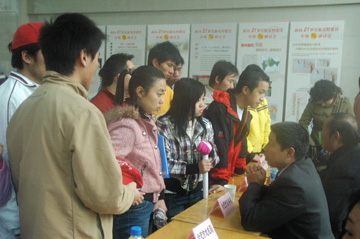 11月26日,2007年安徽省高校畢業生綜合類就業市場首場大型招聘會在合肥學院南校區如期舉行。省內外共400余家用人單位和3萬多名畢業生參加了此次雙向選擇招聘會。本次招聘會共提供就業崗位1萬多個,很多大型單位紛紛組團前來招聘,如中國銀行、中國聯通等帶了諸多的招聘職位。而省外用人單位“回頭客”不少,外地市人事局等單位共組織了40多家單位前來參加會議。招聘會從上午8點開始,10點時達到高峰,雖然人數眾多,但整個會場井然有序,熱烈而隆重。