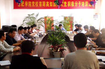 劉建中主持開學典禮,宣讀本次培訓班學員名單,并就培訓任務、時間、形式、要求向學員作了講解。班主任陳昌躍老師向學員分發《高知群體入黨積極分子培訓班教學日程表》。