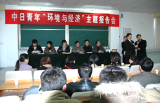 副院長蔡敬民致辭。蔡敬民在致辭中說,希望中日以此為起點,更多地開展中日兩國在“環境與經濟”方面的活動,也希望來訪日本大學生將友誼帶回日本,讓更多的日本朋友了解中國。交流會上,中日大學生分別從環境保護、經濟發展、中日交流方式三個方面進行了探討,并簽署了環保要從娃娃抓起、不使用一次性用品等6個方面的聯合宣言。
