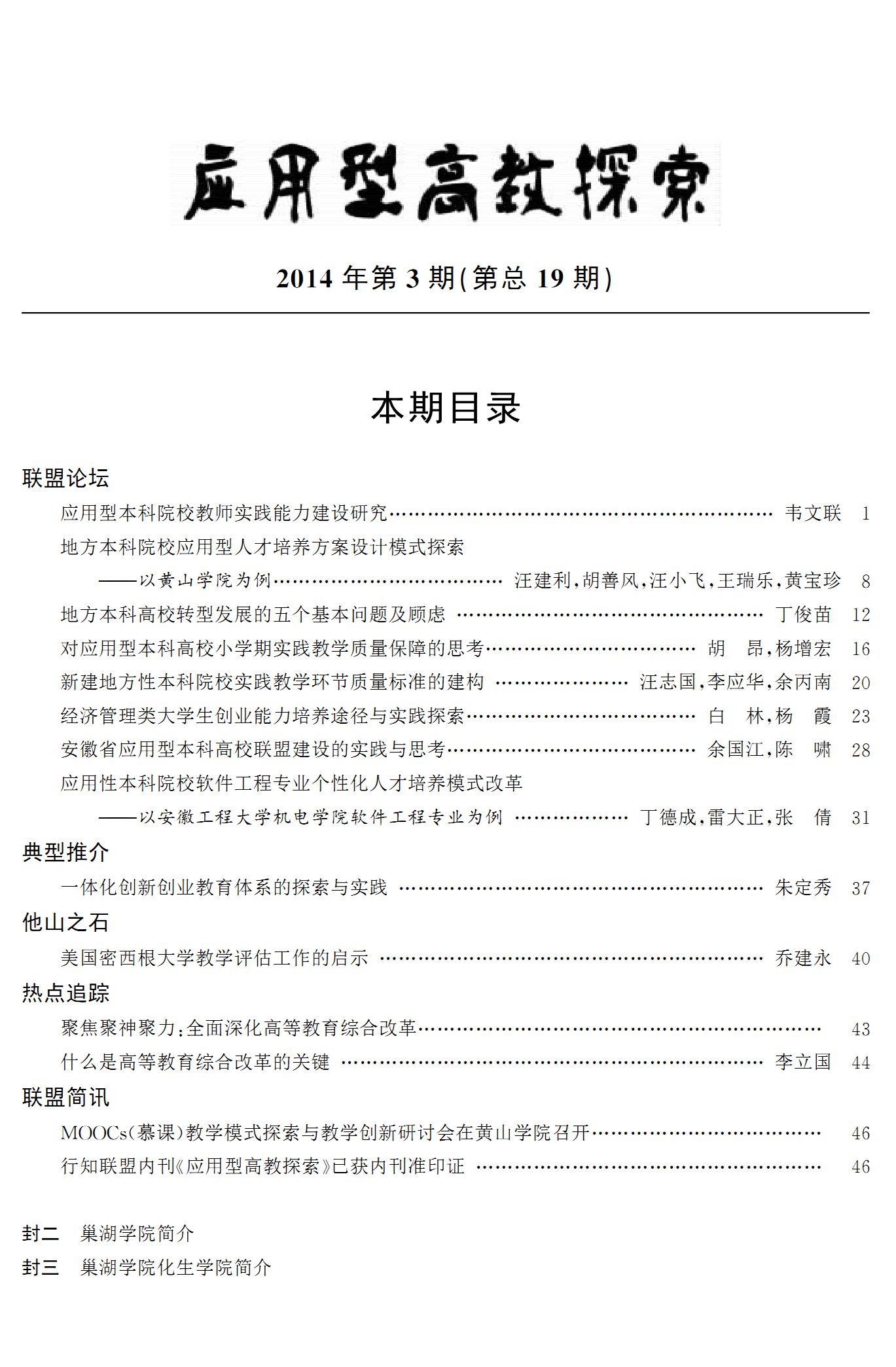 本期是由聯盟高校巢湖學院協辦,典型推介欄目介紹的是該校“一體化創新創業教育體系的探索與實踐”。