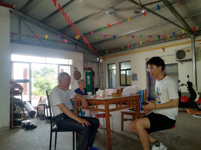 圖為陳鑫同學在采訪金寨縣大灣村村民陳澤申