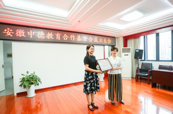 蔣冬梅宣讀了安徽中德教育合作基金會準予行政許可決定書并為基金會頒發《基金會法人登記證書》。她對基金會的正式成立表示祝賀并就基金會今后的規范發展提出了三點建議和要求: