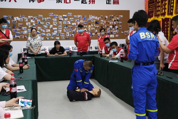 最后,劉曉冬、蘇琴和隊(duì)員為參加活動(dòng)的黨員們帶來(lái)了一場(chǎng)生動(dòng)的急救知識(shí)、救援技能分享課程。隊(duì)員們?cè)诂F(xiàn)場(chǎng)實(shí)操中演示了海姆立克急救法、心肺復(fù)蘇術(shù)、緊急止血等技能的實(shí)施要領(lǐng),大家紛紛表示受益匪淺,課程切實(shí)提高了大家的安全意識(shí)和自救互救能力。