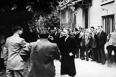 楊承宗博士論文通過后, 約里奧?居里夫人向他表示祝賀