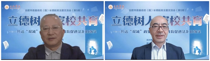 下午,合肥七中黨委書記、校長鄧宗國,合肥市第四十五中學(xué)教育集團(tuán)黨委書記、校長姚劍,合肥市六安路小學(xué)教育集團(tuán)黨總支副書記、校長朱清萍分別以“疫情防控背景下學(xué)生的安全問題與策略”、“雙減背景下如何有效開展家校共育”、“落實(shí)‘雙減’政策回歸教育本真”為主題進(jìn)行了交流發(fā)言。