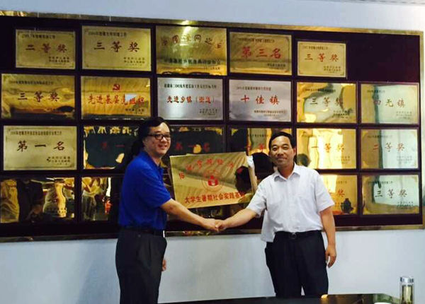 丁明與石頭鎮(zhèn)鎮(zhèn)委領導為大學生暑期社會實踐基地揭牌
