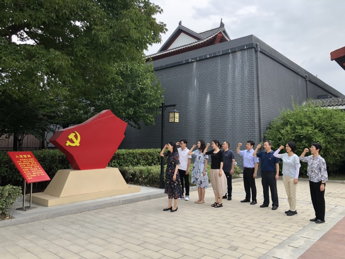 “我志愿加入中國共產黨……”參觀開始前,機關黨委新發展的預備黨員和黨委委員一起胸戴黨員徽章,高舉右拳,在機關黨委書記宋執蕓的帶領下,面對鮮紅的黨旗進行了莊嚴宣誓。入黨宣誓儀式進一步強化了大家的黨員意識,新黨員們紛紛表示,能夠加入中國共產黨既是一份殊榮,更是一份責任,今后將恪守在黨旗下的誓言,與黨同心同德,在新時代建功立業。