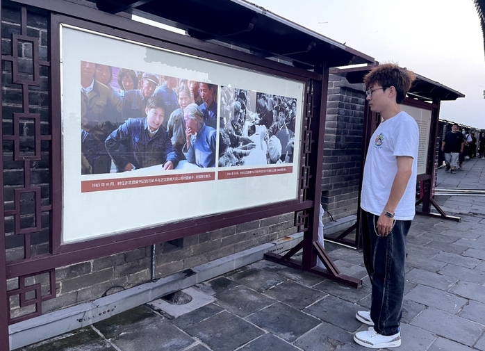 圖為調研人員在城墻上學習習近平總書記在正定任職的事跡