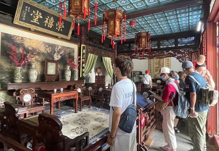 2022年7月9日下午,調研成員先后來到了常山公園和榮國府景區,常山公園內環境優美,風景宜人。走進榮國府景區,就如同翻開了《紅樓夢》,這里是1987版《紅樓夢》電視劇的拍攝地。位于榮國府東南隅的曹雪芹紀念館里陳列有各種版本的《紅樓夢》以及有關紅學的作品書籍,顯示出《紅樓夢》在中國、世界的深遠影響。