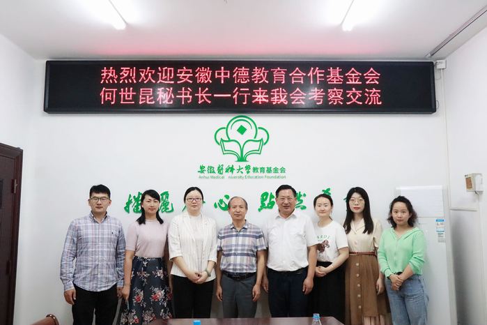 會后,何世昆一行在許柏松陪同下參觀了安醫(yī)大教育基金會工作場所并合影留念。