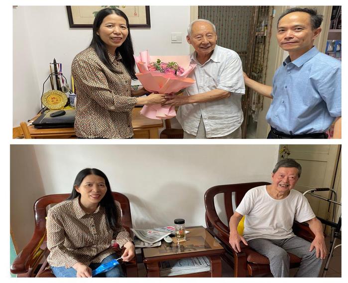 9月29日上午,組織部副部長、離退休工作處副處長宋執(zhí)蕓及離退休工作專員余勇代表學校上門慰問90歲以上的老同志代表,為他們送去了節(jié)日的祝福。