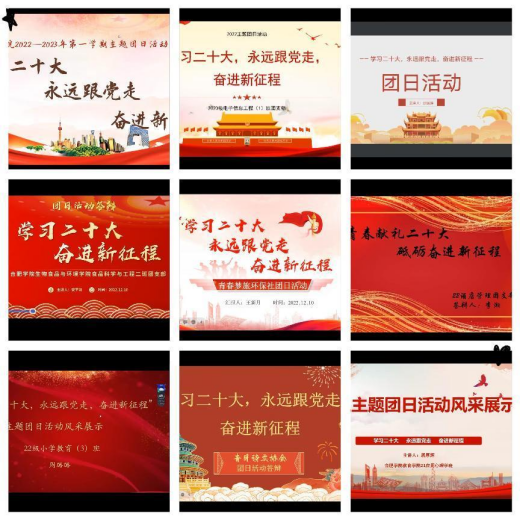 為深入學(xué)習(xí)宣傳貫徹黨的二十大精神,團(tuán)結(jié)引領(lǐng)我校青年將大會(huì)精神落實(shí)到行動(dòng)上,10月至11月,我校300多個(gè)基層班級(jí)團(tuán)支部和34個(gè)社團(tuán)團(tuán)支部開展了以“學(xué)習(xí)二十大 永遠(yuǎn)跟黨走 奮進(jìn)新征程”為主題的線上團(tuán)日活動(dòng)。12月10日,經(jīng)過推優(yōu)和遴選的20個(gè)團(tuán)支部在線上進(jìn)行風(fēng)采展示。