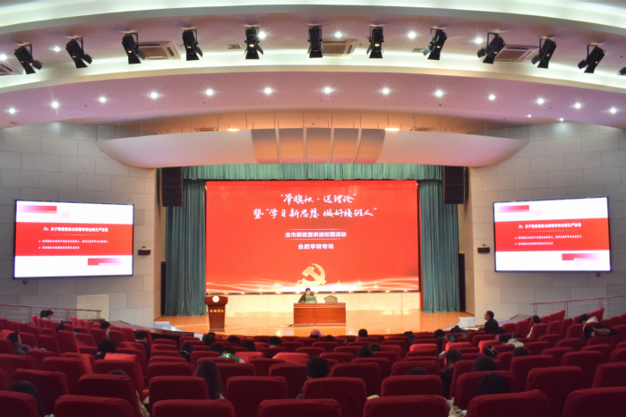 3月9日,學校組織開展“舉旗幟·送理論”暨“學習新思想 做好接班人”全市思政宣講進校園(合肥學院專場)活動,市社科聯副主席、市委講師團副團長、省委講師團基層宣講專家賈猛來校宣講,我校各二級學院師生代表160人參加報告會,會議由黨委委員、宣傳統戰部部長賈峰主持。
