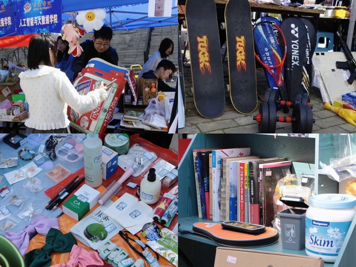 “第一次擺攤,同學們都積極捧場,看到這些東西再次找到新主人,很有成就感!”一位攤主笑著說。“小電扇、小臺燈、美妝產品……我買了一堆!前幾天看到活動通知,我就把需要購買的物品列了個清單,今天一氣呵成。”一位收獲滿滿的同學笑呵呵地展示著手里的戰利品。在跳蚤市場上,舊物遇新主,學生們閑置的物品重新得到利用,畢業生們把不方便帶走的物品留給了學弟學妹,也將帶不走的青春記憶留給了學校。