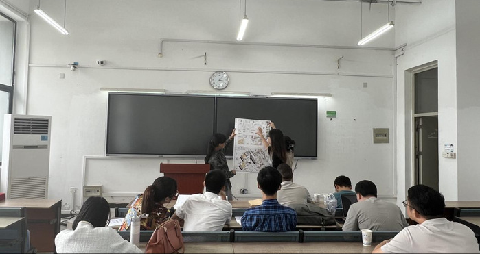 本次復(fù)賽采用現(xiàn)場答辯形式,每位選手就自己作品的設(shè)計(jì)理念、思路、內(nèi)容等進(jìn)行現(xiàn)場解說。專家評委針對選手解說情況進(jìn)行提問并評定最終成績。經(jīng)過激烈角逐,最終共有9名學(xué)生獲獎。參會嘉賓為獲獎學(xué)生頒獎。