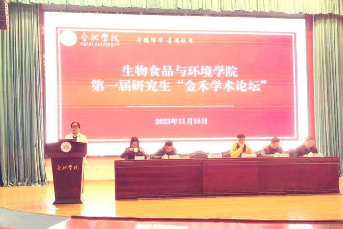 為提升研究生培養(yǎng)質(zhì)量,激發(fā)學(xué)生科研興趣,11月18日,生物食品與環(huán)境學(xué)院、研究生處和科研處共同舉辦首屆研究生論壇。安徽金禾實(shí)業(yè)股份有限公司人事經(jīng)理張嘉聲、安徽金禾化學(xué)材料研究所所長楊洋,研究生處處長葛春梅、服務(wù)地方辦公室副主任肖新國、生物食品與環(huán)境學(xué)院副院長(主持工作)阮班鋒,生物食品與環(huán)境學(xué)院全體研究生及部分本科生參加開幕式。開幕式由生物食品與環(huán)境學(xué)院副院長笪春年主持。