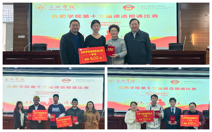 比賽中,選手們以飽滿的熱情誦讀內容,或深情訴說,或激昂贊頌……每位參賽者都用自己獨特的方式展現德語的魅力,選手們精彩的表現贏得了觀眾的陣陣掌聲。經過激烈角逐,劉東憑借優異表現獲得一等獎,李杰銘、陳皓然、趙俊哲獲得二等獎,鄭坤、武文驥獲三等獎。賽后,嘉賓為獲獎學生頒獎并合影留念。
