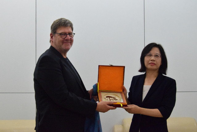 Die Pr?sidentin der Hefei-Universit?t Frau Wu Chunmei empfing die G?ste im VIP-Besprechungsraum in der Bibliothek. Sie wurden von der stellvertretenden Pr?sidentin Frau Chen Xiu und dem jeweiligen Leiter der Abteilung für internationale Austauschkooperation und vom Volkswagen-Institut. Beide Seiten konnten sich über die St?rkung der bilateralen Zusammenarbeit sowie den Aufbau von Volkswagen-Institut verst?ndigen.