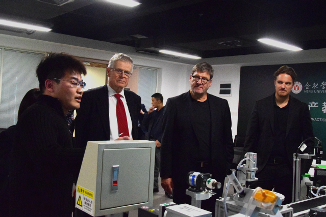 Am 24. Oktober 2023 besuchte Herr Ralph Linde, Leiter für Volkswagen Institut am Hauptsitz der Volkswagen AG, die Hefei-Universit?t um an der Einschreibungszeremonie der Erstsemestler vom Volkswagen Institut teilzunehmen und die Ausstellung für bereits erzielte Früchte bei der deutsch-chinesischen Bildungskooperation sowie das Praktikums- und Forschungs- und Entwicklungszentrum vom Volkswagen-Institut zu besichtigen.