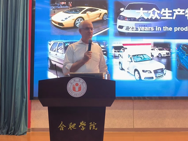 Am 31. Oktober hielt Prof. Schneider, Chief Manufacturing Officer von Volkswagen Anhui und Gastprofessor der Universit?t Hefei, im akademischen H?rsaal der Bibliothek eine umfassendenund anschauliche Vorlesung zum Thema fortschrittliche Fertigung und intelligente Netzwerkverbindungen für die Studierenden des Volkswagen-Instituts des Jahrgangs 2022.