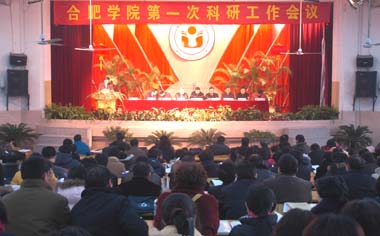 上午8點30分,趙良慶宣布會議正式開始。盛志剛代表市政協、市科協對本次科研工作會議的召開表示祝賀,并充分肯定了我院對合肥市的發展所做出的巨大貢獻,提出堅持創新型社會關鍵在人才,科研能夠很好的帶動人才的培養。希望我院能著眼與合肥經濟現狀,大力發展知識產業,積極引進、培養科技創新型人才,在對外交流與合作方面為合肥是牽線搭橋。接著,張玉華代表省科教廳發表講話,他指出高校科研要貫徹全國科技大會和國家“十一•五”的精神。并用看電視要調準頻道為例子,指出高校申請科研項目也要找準方向。張玉華還詳細介紹了科研項目的分類,為我院正確申請科研項目提供了幫助。