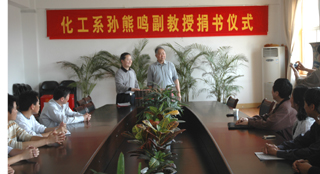 4月30日上午,我院退休教師、原化學(xué)與材料工程系副主任孫熊鳴副教授捐書儀式,在我院北區(qū)行政樓會(huì)議室隆重舉行。化學(xué)與材料工程系主任邵國泉教授、教務(wù)處副處長董強(qiáng)副教授及該系部分師生近20人參加捐書儀式。