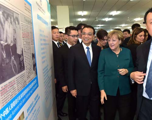 但10月30日上午,兩國(guó)總理卻不約而同地稱之為中德合作的成功典范。在該校圖書館舉辦的“中德共建合肥學(xué)院三十周年展覽”上,李克強(qiáng)在留言冊(cè)上寫下“三十而立、卓有成效、根深葉茂”的期望。默克爾則連連祝其生日快樂(lè),還留言“我祝愿獲得更大成就”。