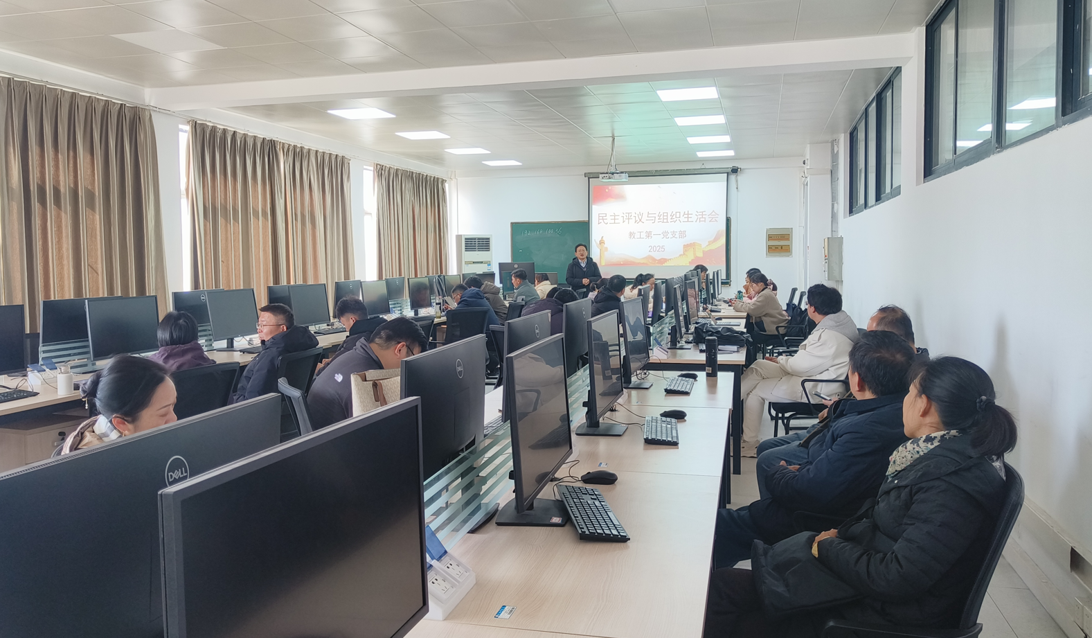 2025年2月18日下午,人工智能與大數據學院教工第一黨支部在36-506組織全體黨員教師召開組織生活會和民主評議會。會議由人工智能與大數據學院教工第一黨支部書記何立新主持。