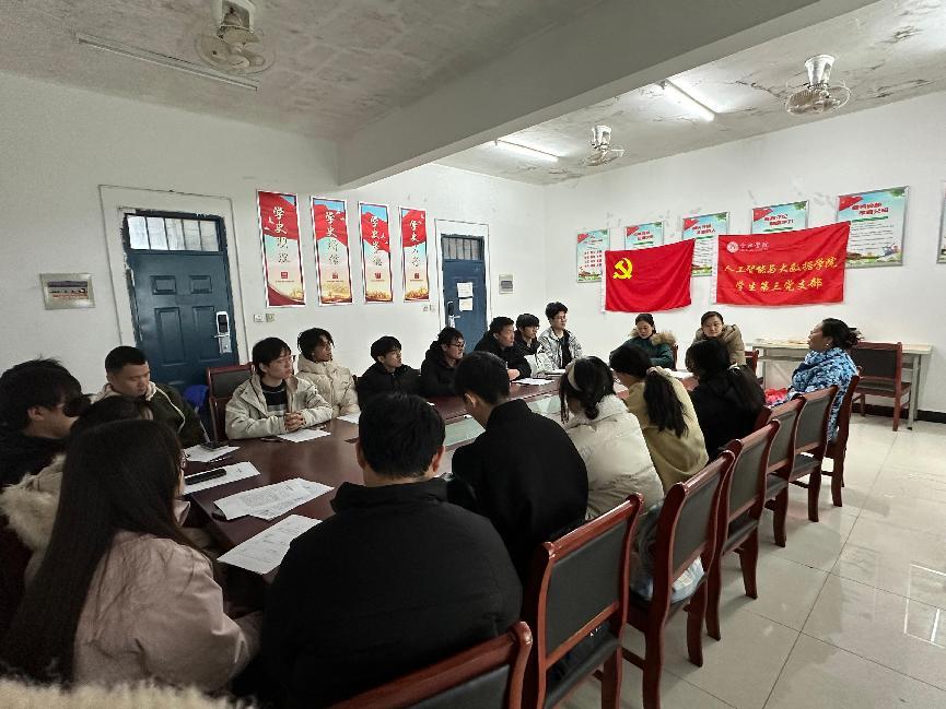 為深入學習貫徹黨的二十大精神,進一步強化支部建設,2025年2月21日中午12點,人工智能與大數據學院學生第三黨支部在48棟119會議室召開了組織生活會暨民主評議會。院黨委委員張琛列席指導,支部全體黨員參會。
