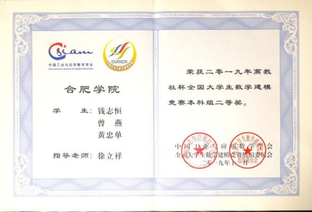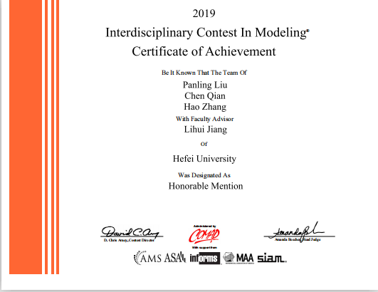 【近幾年合肥學院學子美國大學生數學建模競賽獲獎名單】
