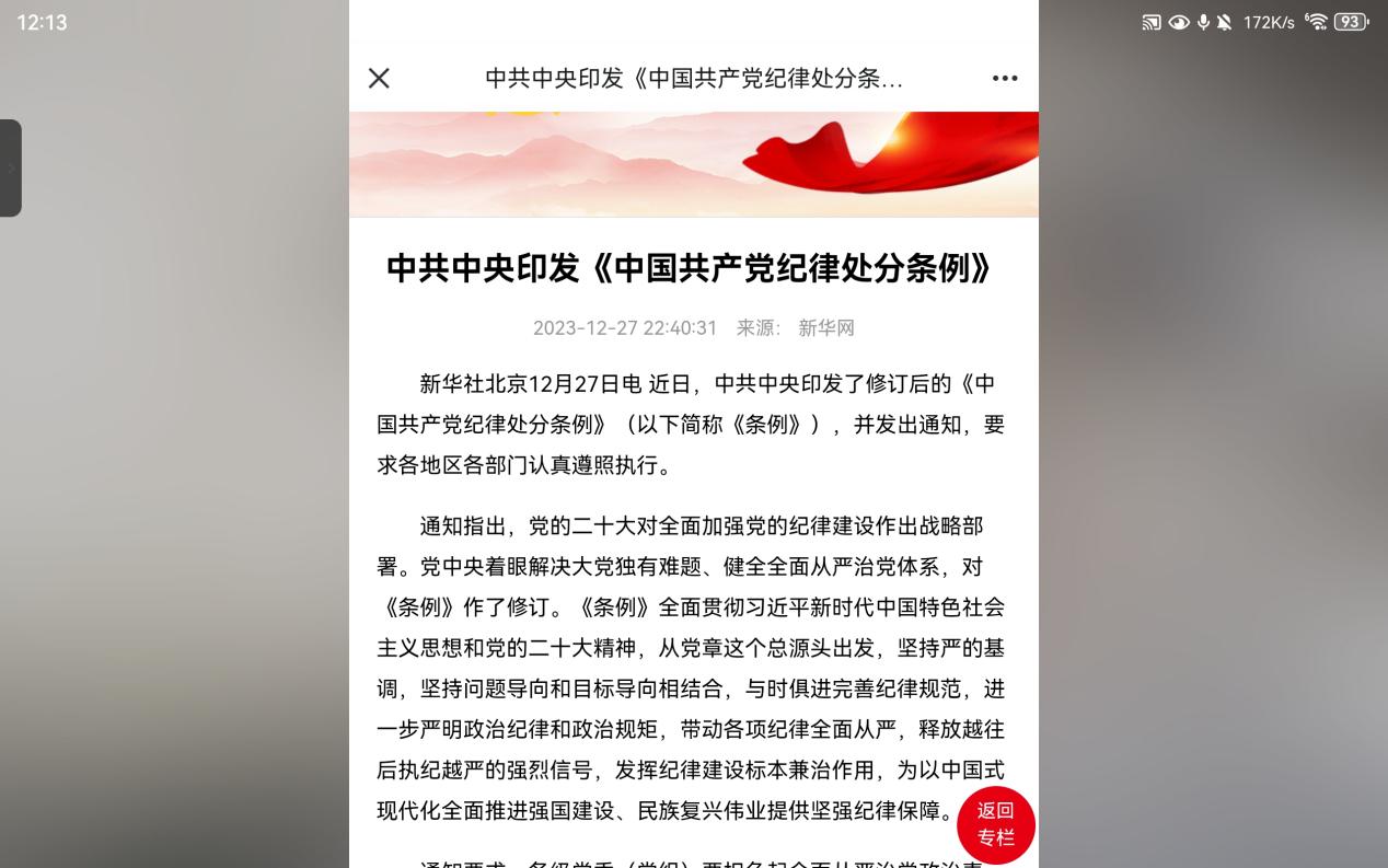 近期,中共中央印發了修訂后的《中國共產黨紀律處分條例》(以下簡稱《條例》),標志著黨在紀律建設領域邁出了堅實的步伐。為深化對《條例》的理解和掌握,進一步強化黨的紀律建設為貫徹落實上級黨委文件精神,嚴格執行黨的組織生活制度,進一步發揮黨員先鋒模范作用。2024年2月18日,人工智能與大數據學院學生第三黨支部召開學習貫徹《中國共產黨紀律處分條例》的線上會議,本次會議由支部書記張銀雙主持。
