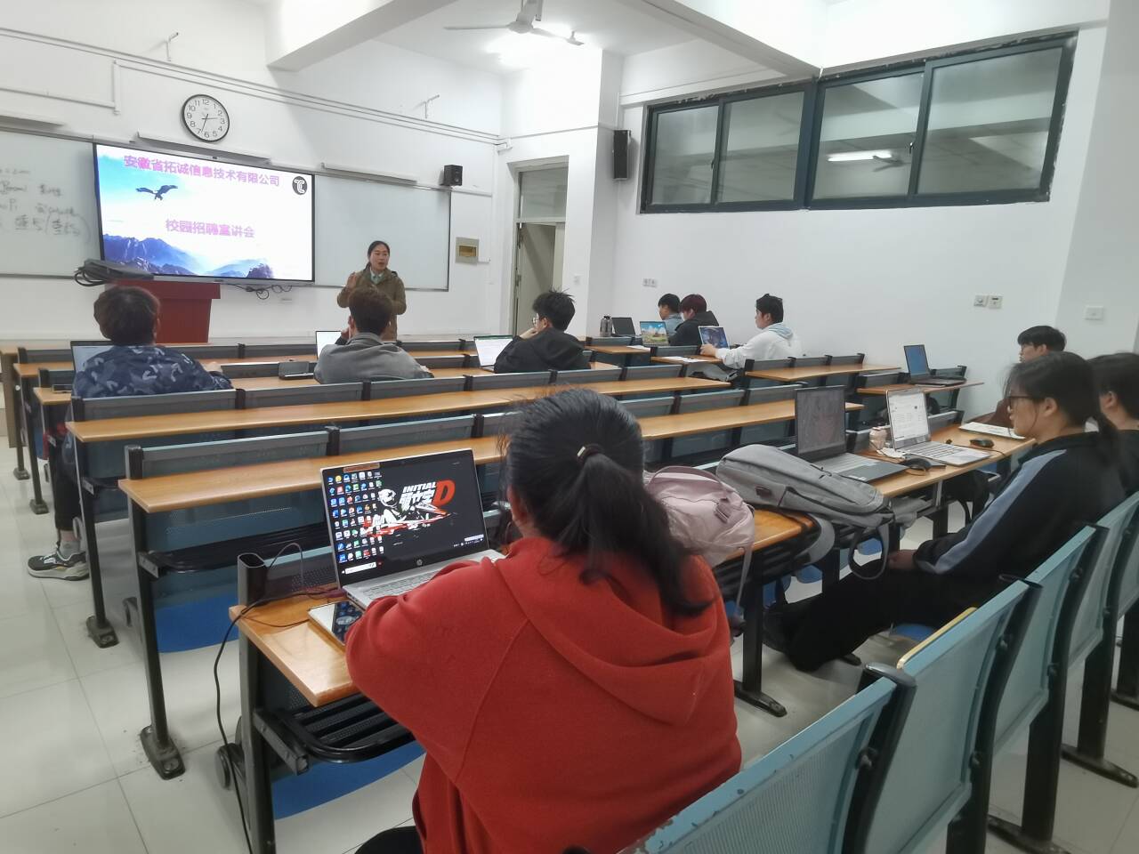 419日下午,安徽拓誠科技有限公司在合肥大學36204教室舉行了校園招聘活動,眾多合肥大學的在校大學生踴躍參與。