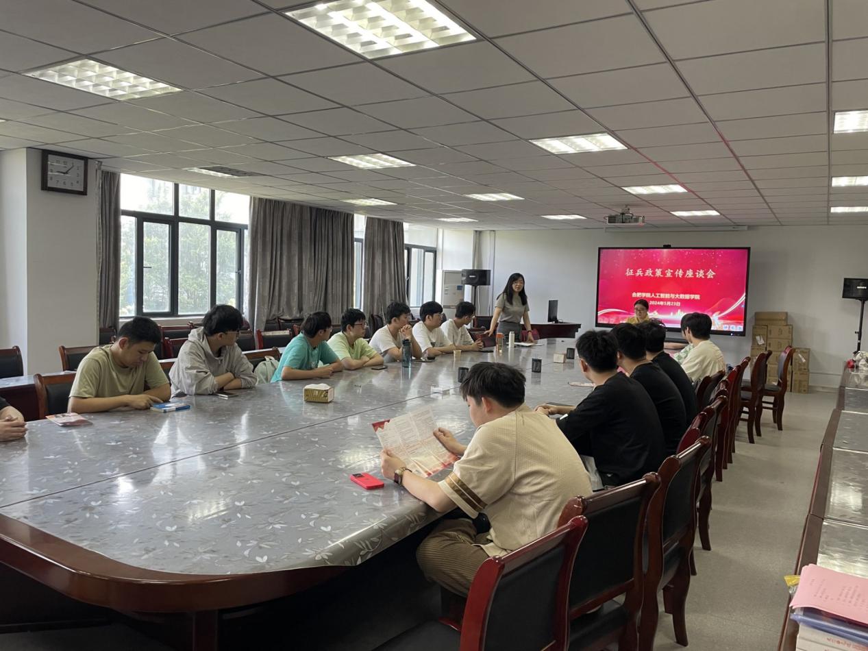 為普及最新的征兵政策,激發青年參軍報國的熱情,同時解答大家的相關疑問,確保征兵工作的順利進行,合肥大學人工智能與大數據學院于2024523日在36305召開征兵政策宣傳會。會議主講人鄭國平為大家詳細介紹了征兵相關內容。