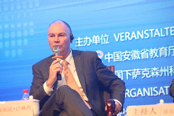 10月28日,在第九屆中德應(yīng)用型高等教育研討會上,合肥學(xué)院黨委書記蔡敬民教授與合肥學(xué)院合肥德國應(yīng)用科學(xué)學(xué)院德方院長法爾克·霍恩教授主持進(jìn)行了校長對話,德國奧斯納布呂克應(yīng)用科學(xué)大學(xué)校長貝爾特拉姆教授、德國德累斯頓學(xué)院校長亨塞爾教授、德國埃姆登/里爾應(yīng)用科學(xué)大學(xué)克羅伊茨教授、德國安哈爾特應(yīng)用科學(xué)大學(xué)校長巴格丹教授與中國長春工程學(xué)院校長韓立強(qiáng)教授、石家莊學(xué)院校長王俊華教授、長沙學(xué)院校長楊小云教授、許昌學(xué)院校長趙繼紅教授圍繞第九屆中德應(yīng)用型高等教育研討會基于中國制造“2025”與德國工業(yè)4.0背景下應(yīng)用型大學(xué)的使命與變革展開共同探討。