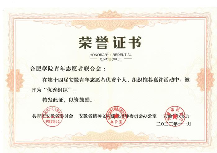 我校榮獲第十四屆安徽省青年志愿者“優秀組織”和“優秀個人”稱號