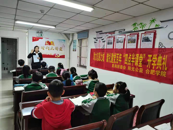 外國語學(xué)院經(jīng)過前期的調(diào)研發(fā)現(xiàn),經(jīng)開區(qū)很多企業(yè)的員工和居民都在為下午孩子放學(xué)早無人看管而發(fā)愁。為了解決他們的后顧之憂,外國語學(xué)院聯(lián)合星海居委會打造“四點半”課堂。選拔優(yōu)秀的黨員和入黨積極分子去“四點半”課堂做義務(wù)家教,成功解決了家長們的難題,得到周圍群眾的大力贊揚。