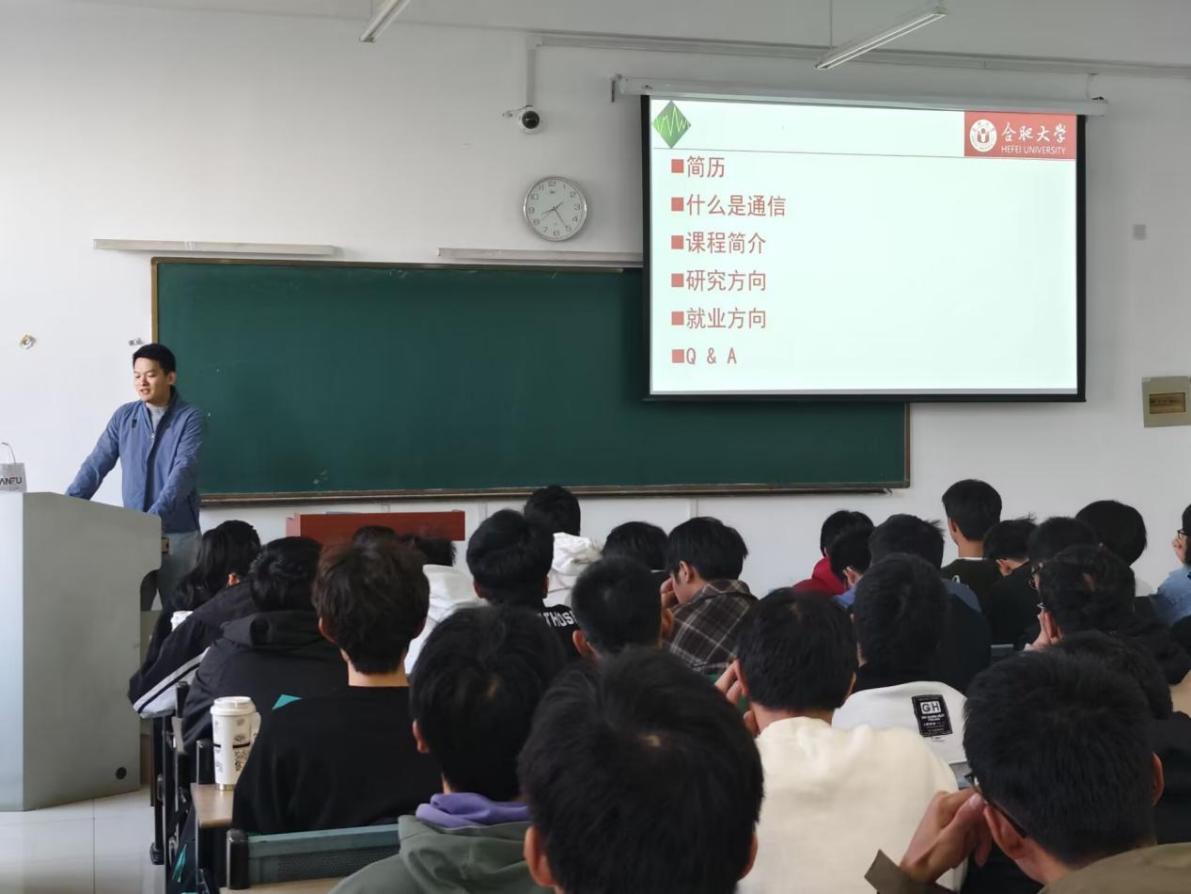 1112日,專業邀請杰出校友章恩浩同學回校給學生做了專題分享。章恩浩同學2014年考入合肥大學通信工程專業,2015年至2017年應征入伍,2020年本科畢業并考入西安電子科技大學攻讀碩士研究生,2023年碩士研究生畢業,就職于芯思源微電子技術有限公司。章恩浩同學首先對其個人情況做了簡要介紹,然后圍繞專業、就業、課程體系和考研和工作經歷深入交流了經驗,最后提問環節和同學互動熱烈。