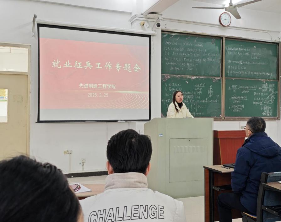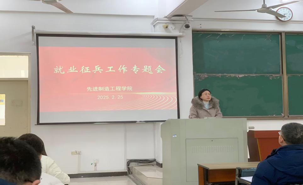 為促進(jìn)我院畢業(yè)生充分高質(zhì)量就業(yè),部署下一階段就業(yè)和征兵工作,2025年2月25日下午,先進(jìn)制造工程學(xué)院在38棟3階梯教室召開全院教師就業(yè)征兵工作專題會,由學(xué)院黨委書記杜娟主持,學(xué)院全體教師參會。