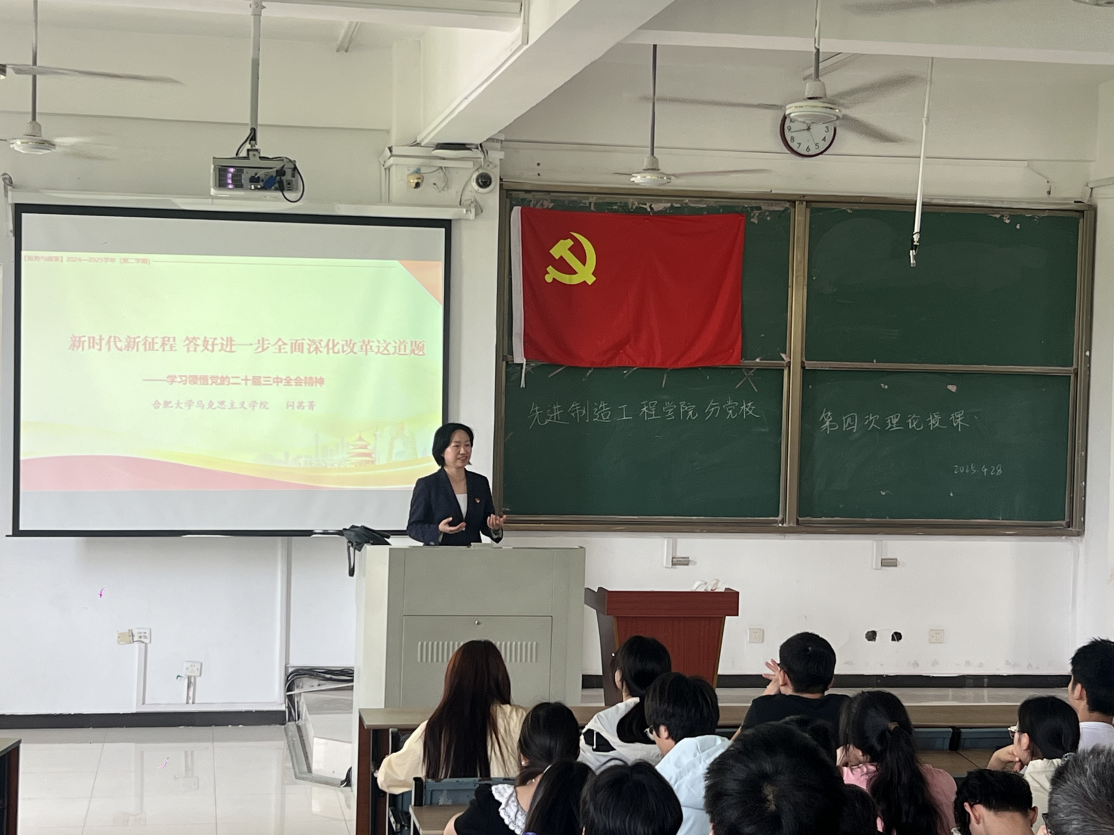 2025428日中午,先進制造工程學院分黨校第十期入黨積極分子培訓班第四次理論授課于383階梯教室舉行,本次黨課由馬克思主義學院閃茜菁教授進行授課。培訓班共114名學員參加了本次課程,本次黨課主題是“新時代新征程,答好進一步全面深化改革這道題——學習領悟黨的二十屆三中全會精神”。